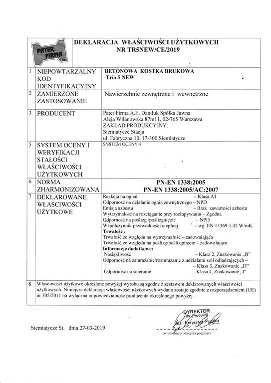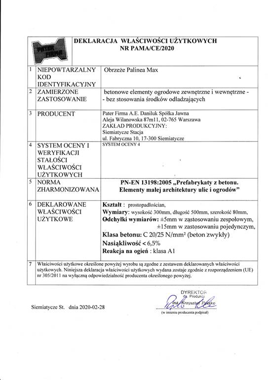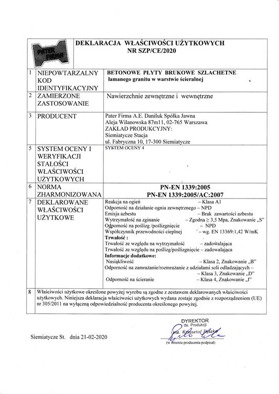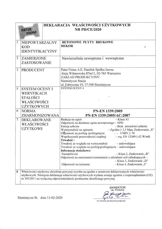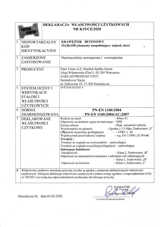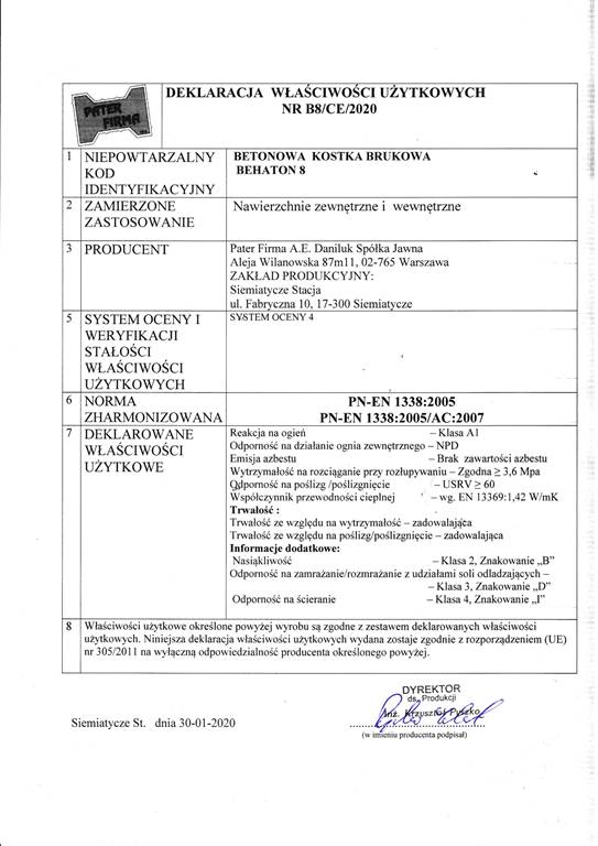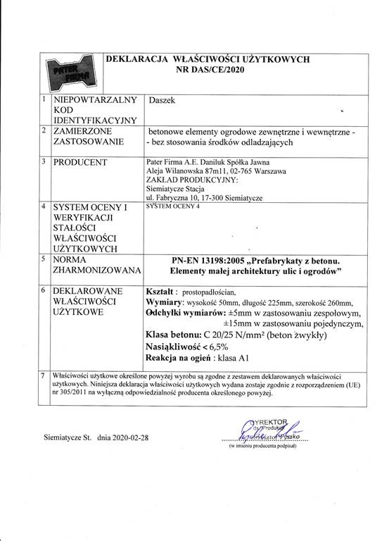 Dotyczy projektu „Wprowadzenie innowacji procesowej i produktowej w przedsiębiorstwie Pater Firma A.E. Daniluk Spółka jawna w zakresie produkcji nowych i udoskonalonych elementów betonowych” nr WND-RPPD.01.03.00-20-0126/17 realizowanego w ramach umowy nr UDA-RPPD.01.03.00-20-0126/17-00 zawartej dnia 28.12.2017.